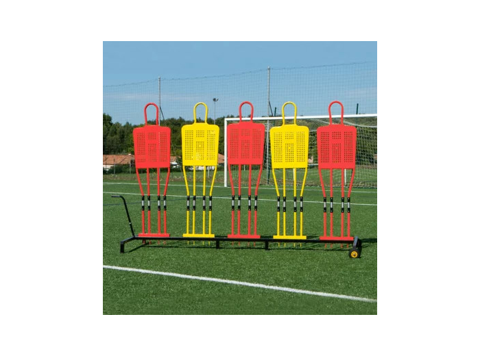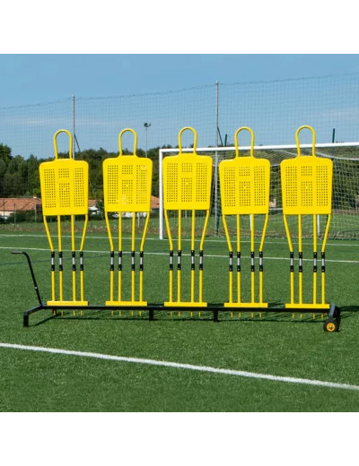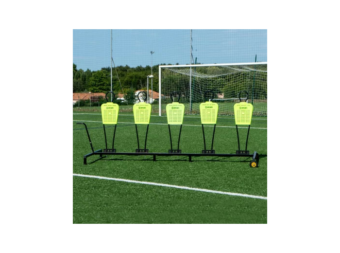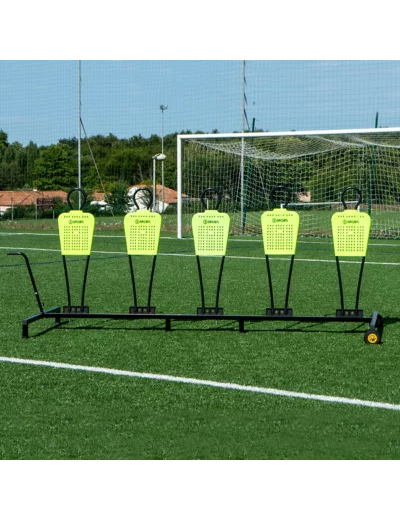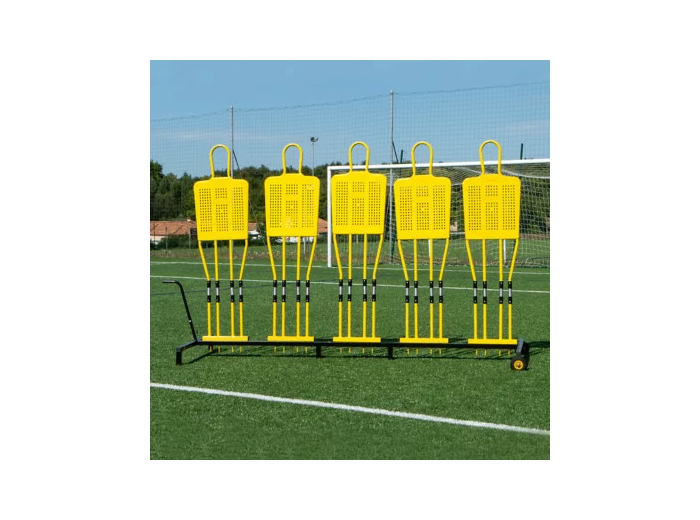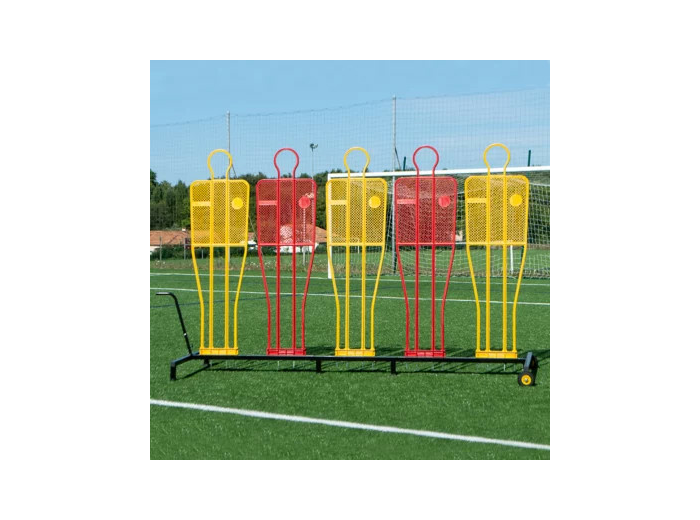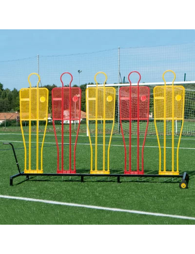 Chariot à mannequins noir pouvant accueillir les mannequins ref 062717A, 063452, 063475 et 063481. Facile à monter, très robuste et très maniable, il vous facilitera vos séances de coup franc. Livré sans mannequins.
