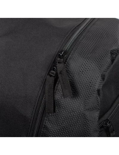 Sac à dos composé d’un grand compartiment principal, 2 poches filet latérales et une grande poche avant zippée pratique pour y ranger vos petits accessoires. Dos et brides de transport matelassés pour plus de confort. Matière : polyester. Coloris : Noir avec bandes réfléchissantes sur le devant. Contenance : 25L, Epaisseur : 15cm, Largueur : 30cm Hauteur : 44cm.