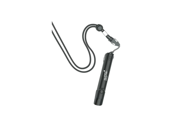 Sifflet électronique à commande manuelle avec fonction lumière LED. Hygiénique, une tonalité, forme ergonomique, léger et robuste. Livré avec cordon. Fonctionne avec 4 piles LR44 incluses. Haut débit sonore décibel : max. 110DB.