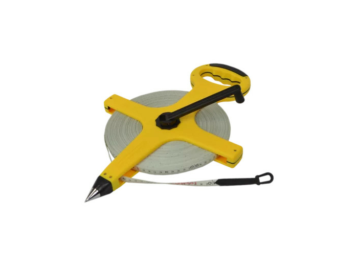 Boîtier thermoplastique avec ruban en fibre de verre avec graduation centimètrique et pouce. Longueur 30m.