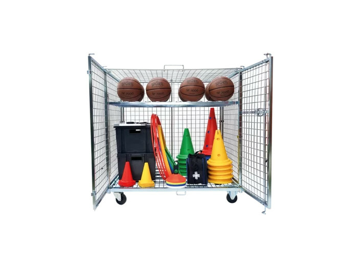 Armoire basse antivol en acier zingué équipée de 2 portes conçues pour être fermées avec un cadenas (non fourni) et 4 roues de diam 100mm (2 fixes + 2 pivotantes. Maille 5x5 cm. Dimensions intérieures : l. 114 x P. 74 x H. 104 cm. Dimensions extérieures : l. 120 x P. 83 x H. 125 cm. Poids max en charge : 400 Kg / Ouverture sur côté 120 cm. Vendue sans étagère (vendues à part). / Livrée montée.