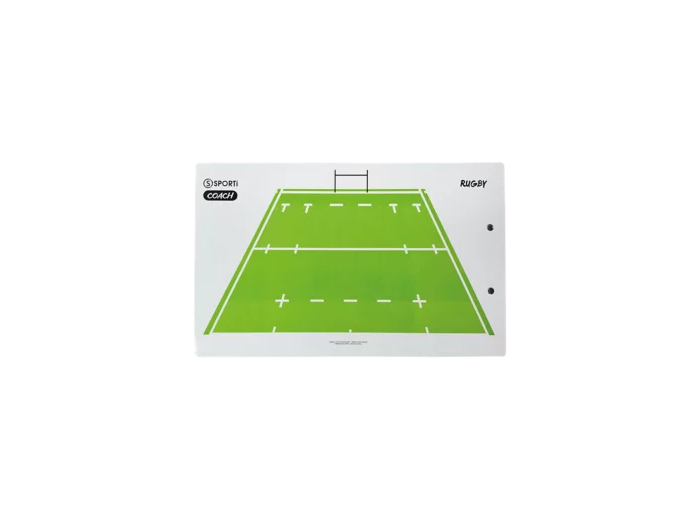 Planche effaçable rigide en PVC avec pince métallique, une face avec terrain en entier et une face avec un demi terrain avec vue immersive. Livré avec un crayon effacable sous packaging individuel facile à mettre en rayon. L.36cm x l.22,5cm. Existe en 5 versions de sport différents : Basketball, Football, Handball, Rugby et Volleyball.