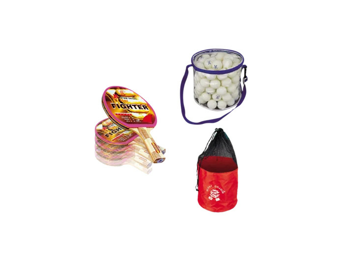 Composé de 12 raquettes FIGHTER avec sac de transport + 1 sac de 100 balles.