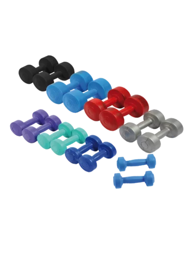 Haltères en ciment enrobé vinyle de différentes couleurs pour un meilleur repérage. Bonnes prises et résistantes. 2 x 3kg - Rouge