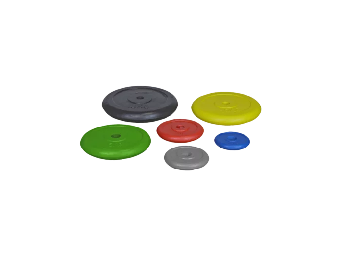 Poids en fonte recouvert de caoutchouc, adapté aux barres de musculation de diamètre 28 mm. 0.5kg - Bleu.