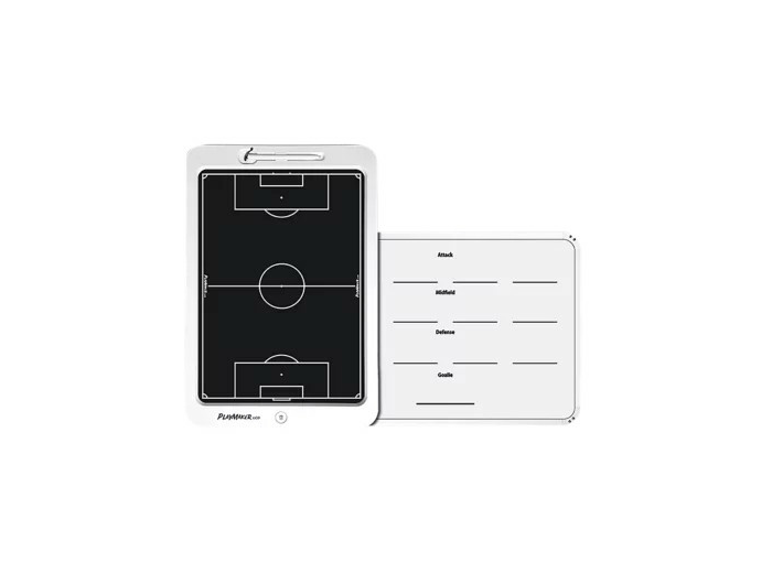 Cette tablette est équipée d’un écran LCD offrant une surface d’écriture très nette et lumineuse. Une fonction « d’effaçage instantanée » vous permettra d’effacer votre tablette en appuyant simplement sur un bouton et un autre bouton vous permettra de verrouiller ou déverrouiller l’écran. La tablette comprend également au dos, un tableau blanc effaçable à sec pour vos compositions d’équipe. Livré avec un stylet d’écriture et son manuel d’utilisation. Disponible en 2 formats : 14’’ L.32,5 x l.23,5cm avec une surface d'écriture de 20x27,5cm, fonctionne avec une pile incluse CR2025 et 20’' L.47 x l.32cm avec une surface d'écriture de 27,5x38,5cm, fonctionne avec 2 piles incluses CR2032. Existe en 5 sports différents (selon le format) : Basketball, Football, Handball, Futsal, Rugby et Volleyball.