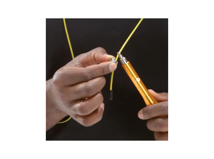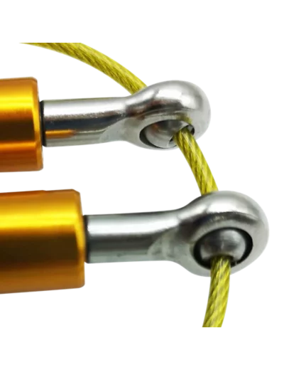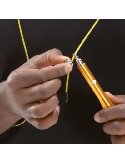 Corde à sauter ajustable avec cable gainé. Structure aluminium. Roulement à bille pour assurer un maximum de fluidité.