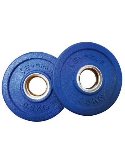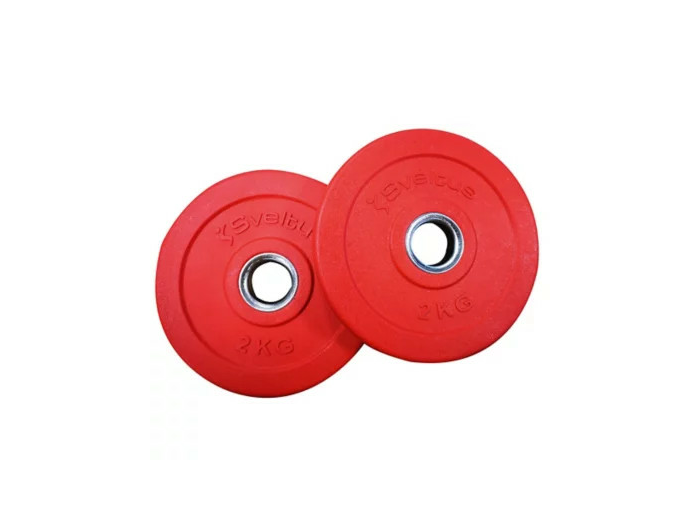 - Kit 8 kg : 1 barre + 1 paire de stop-disques + 2 poids 500 g (bleu) + 2 poids 1 kg (jaune) + 2 poids 2 kg (rouge)