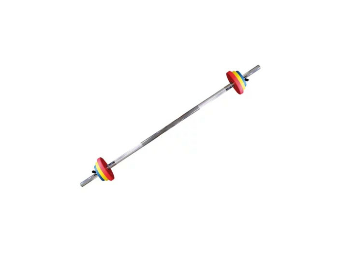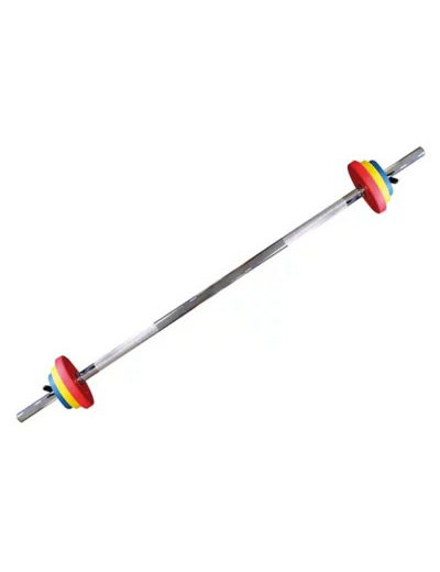 - Barre acier chromée de 1 kg, Ø 28 mm, supportant une charge maximale de 80 kg + 1 paire de stop-disques avec embouts plastifiés.