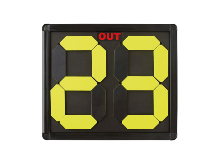 Système manuel recto/verso avec des chiffres orange fluo d’un côté, et jaune fluo de l’autre.