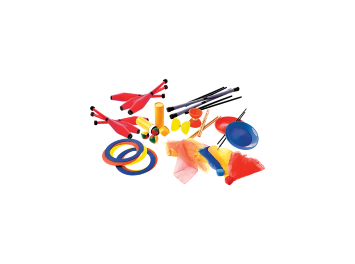 Composé de 2 lots de 3 balles à jongler, 2 diabolos, 2 assiettes chinoises, 2 lots de 3 foulards, 2 lots de 3 anneaux, 2 bâtons du diable, 2 lots de 3 massues et 1 lot de 3 foulards lestés.