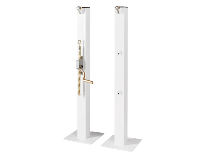 Paire de poteaux de padel en acier carré à platine blanc.